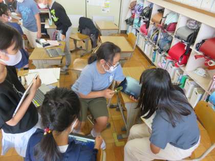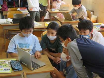 今日は前回まとめた内容を交流しました。思考ツールでまとめた自分の考えを友達に見せながら話しています。