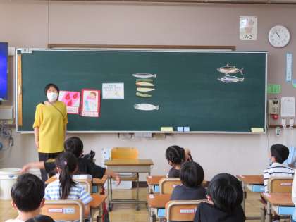 魚の骨の上手な取り方を栄養教諭の早田先生に教えていただきました。