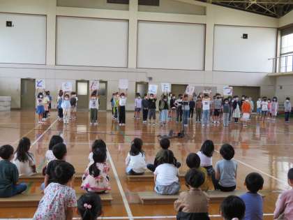 なかよし学級・2〜6年生がクイズや劇の発表をして,お祝いをしてくれました。