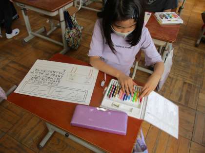 生活科の学習で,教室の看板を作りました。各教室のことが分かるように,一生懸命作成しました。看板を貼りに行くのを楽しみにしています。