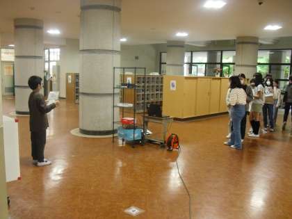 児童朝会がありました。各委員会の委員長が今年1年間どんな活動をするかを話しました。