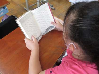 16日は,ゆめいろ読書デーです。今日は,図書館に行って本をかり,一人一人選んだ本を読みました。