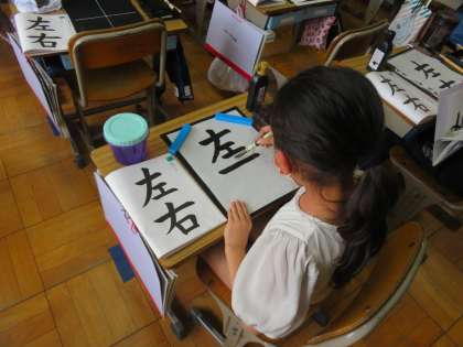 今日は「筆順に気を付けて,字形を整えて書く」をめあてに取り組みました。たて画や横画の長さ,文字全体の字配りにも気を付けて書きました。