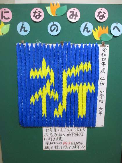 明日からの修学旅行に向けて,「祈り」をこめた折り鶴が出来上がりました。