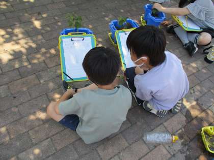 生活科の学習で,野菜の苗の観察をしました。葉の形や色をよく見たり,手でさわったりして,「葉っぱがすこしザラザラしてる」など,気づいたことを嬉しそうに伝えてくれました。