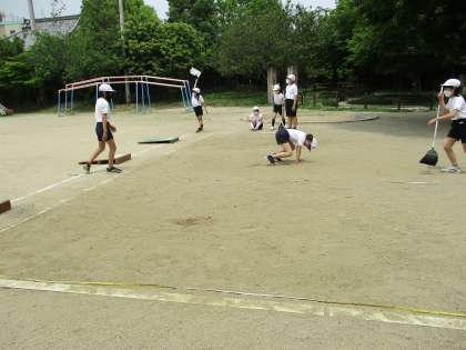 体育で走り幅跳びの学習をしています。