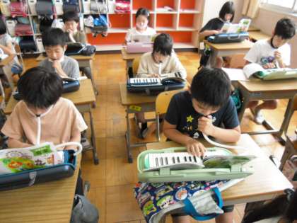 「ドレミで歌おう」の学習では,けんばんの「指くぐり」と「指またぎ」の練習をしています。