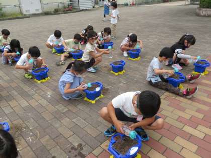 生活科の学習で,あさがおのたねをまきました。