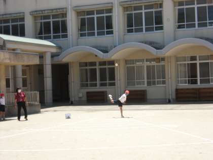 新体力テストの「ソフトボール投げ」をしました。
