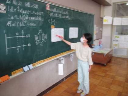 分数×分数の学習で,かける数の分子が1ではないときに,どのように計算をすればいいのかを話し合いました。