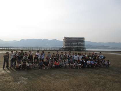宮島では例年よりも潮が引き,改修中の鳥居まで歩けるほどの引き潮でした。