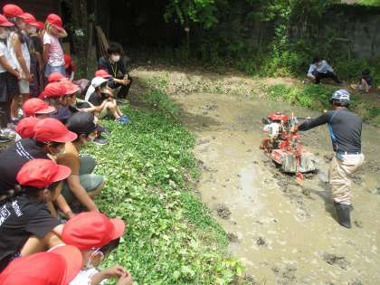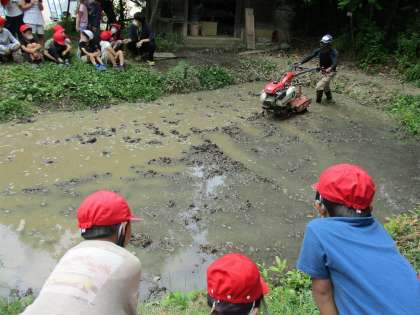 生活科の学習で,田おこしと代かきの様子を見ました。