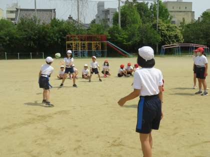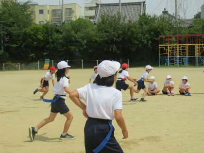 コンタクトスポーツのラグビーからコンタクトを取除き,誰でも楽しめるようにしたのが,「タグラグビー」です。タックルで相手の攻撃を止める代わりに,相手の腰に付けた「タグ」をとります。