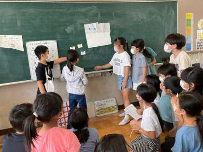 イベント係の子ども達が,イベントを開催してクラスを盛り上げてくれました。今回は「宝くじ大会」です。まずは一人ひとりに番号が書かれた紙が手渡されます。係の子どもが当選番号を発表を発表して,当選者が決まります。写真は当選番号をのぞき込む子どもたちの様子です。