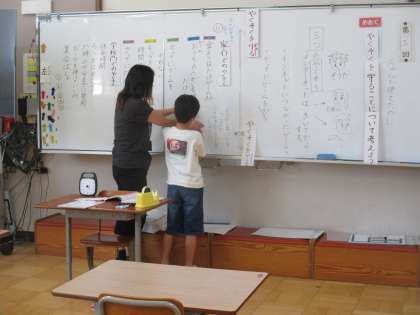 やくそくを守ることについて考えました。家での約束はお家での約束,学校でのやくそくは,仁和小みんなの約束だということを子どもたちはよくわかっています。やくそくを守った時の気持ちや破った時の気持ちを考え,前回の心のブレーキのイラストと共に約束のイラストを教室に掲示することにしました。