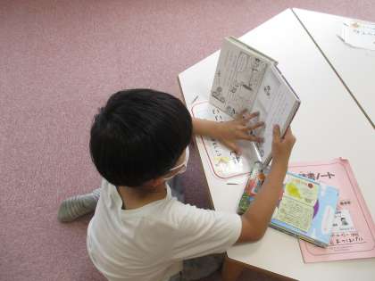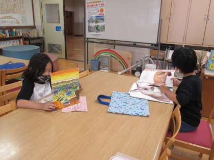 図書館に行って,本をかりました。本を選んで,じっくり読んでいました。