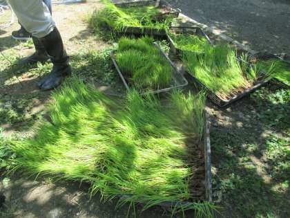 今日は,2年生の田植え体験がありました。晴天の下,カエルやトンボが迎える中,やさしく丁寧に植えていきました。