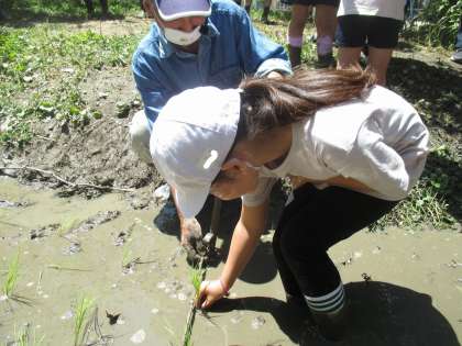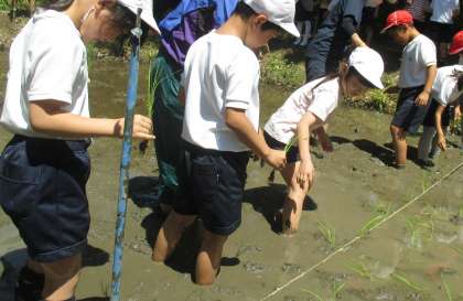 田植えが終わった後,田植えを教えに来てくださった地域の方に質問をさせて頂きました。初めて知ることばかりで,子どもたちは「えー。」「すごい。」と声をあげて驚いていました。