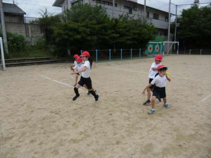 走る順番やコースを考えながら,チームで力を合わせて走っていました。