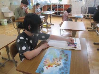2回目ののゆめいろ読書は,梅雨ということで雨にちなんだ紙芝居を読みました。「あめたろう」自分が好きな場面の感想や絵をワークシートにまとめました。