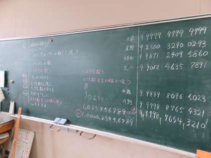 班の中で一番大きな数を見つけて,最後にはクラスで一番大きな数を見つけました。その活動を通して,「大きな数のしくみ」について考えました。