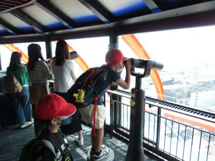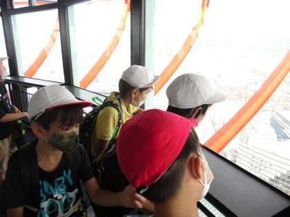 三方を囲む山や,南北に走る烏丸通,数多く見える世界遺産など,子どもたちは目を輝かせてたくさんのことを発見していました。
