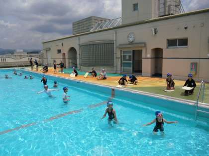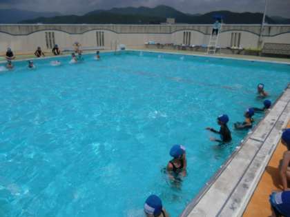 友達とペアになって,力を抜いてけのびができるように練習しました。