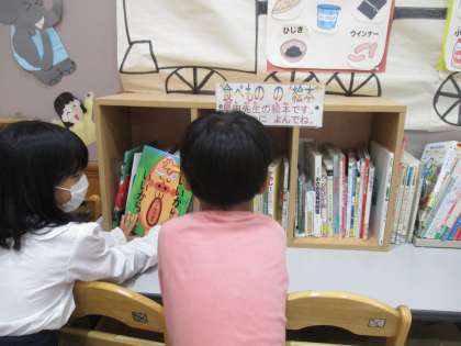 ランチルームで給食を食べた後は,食べ物クイズや食べ物の本などを見て楽しみました。