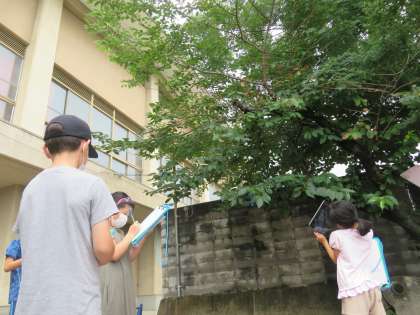 春から続けている観察も7月まできました。草木の様子をみんなで見に行きました。