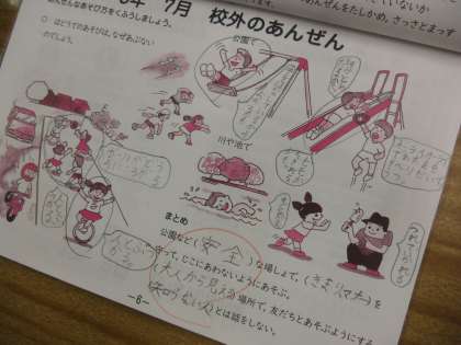 安全ノートを使って,歩道や公園・川などでの危険について話し合いました。