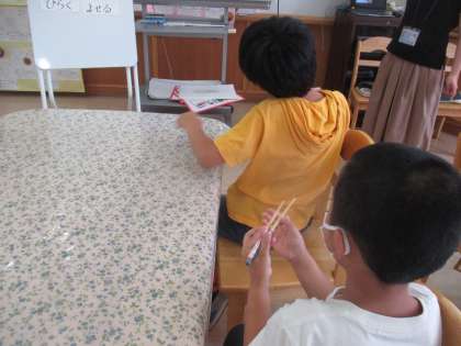 楽しみにしていたランチルームでの給食時間。ランチルームを広く使って,みんなの顔がいつもよりよく見えた今日は,さらにおいしく感じました。栄養教諭の早田先生と一緒にお箸の正しい持ち方の勉強もしました。みんなとても上手でした。12時と13時の時計の魔法も見ることができました。