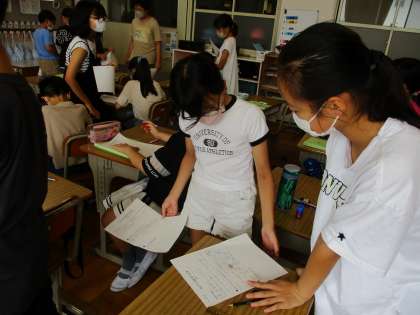 商品を買った後のお金の流れはどうなっているんだろう。という身近な生活とお金の関係を考えました。自分で考えた後は、友達に伝えて考えを広めていました。