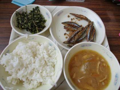 今日の給食では1年に1回の献立「きびなごのこはくあげ」が出ました。