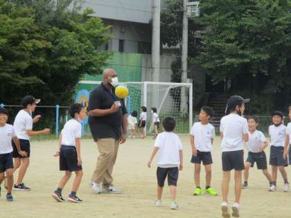 休み時間は、子どもたちと一緒にドッジボールをして遊んでくださいました。みんな、大喜びでした。