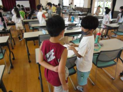 友達と交流しながら、「自分の得意な絵を生かしてお店のポスターを作りたい。」「学校でお店のことを新聞にして伝えたい。」と、たくさんのアイデアを考えていました。