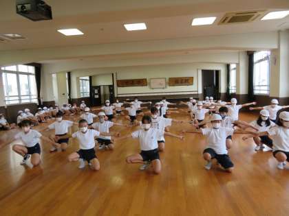 一組と二組で分かれて,お互いにダンスを見合いました。