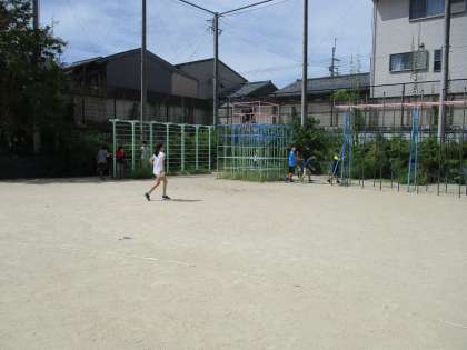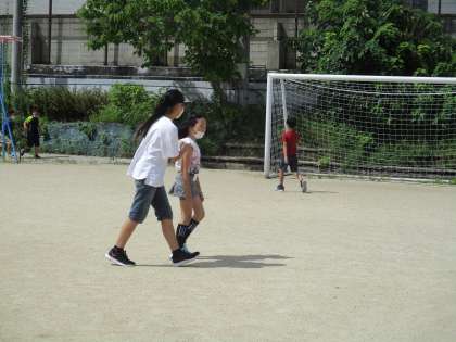 休み時間に、クラスみんなで運動場に出て遊んでいます。