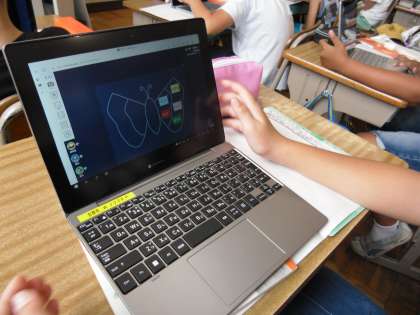 今日は「山小屋で三日間すごすなら何を持っていくか」を、「ロイロノート」の「シンキングツール」を使って整理しました。