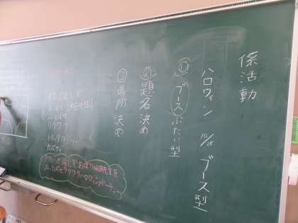 今日は「お楽しみ会」の企画会議の2回目です。今回も代表委員の二人が司会をしました。1人は,自分のノートに話合う内容を事前に整理しており,今日の話合いに向けてしっかり準備をしているのがよく分かりました。