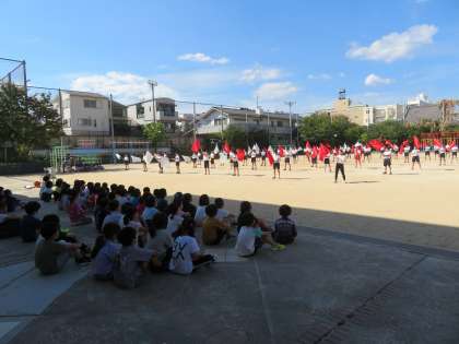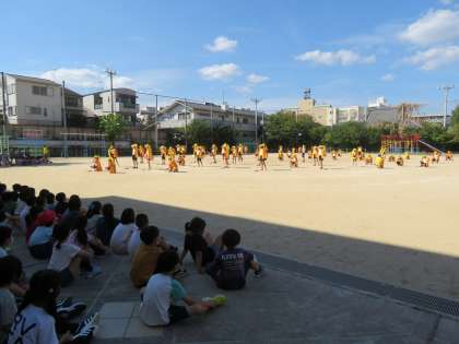 当日見ることができない1、2年生が6年生の最後の演技を見に来てくれました。