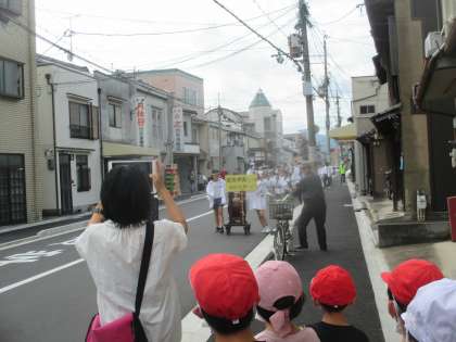 ずいき祭りが始まっています。今日は,こども神輿の巡行がありました。仁和小学校の子どもたちも参加していました。ずいきや千日紅など植物でかざられた素敵な神輿の巡行です。「わっしょいわっしょい。」の活気のある声が秋空に響いていました。