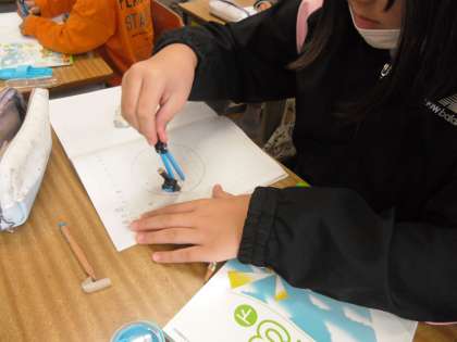 針がずれてしまったり、線が上手にかけなかったりすることもありましたが、何度もかいているうちに、しっかりとした円がかけるようになってきました。