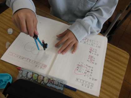 今日は算数科で初めてコンパスを使いました。