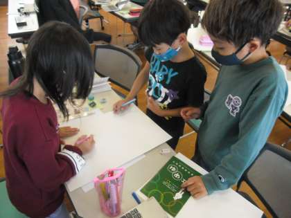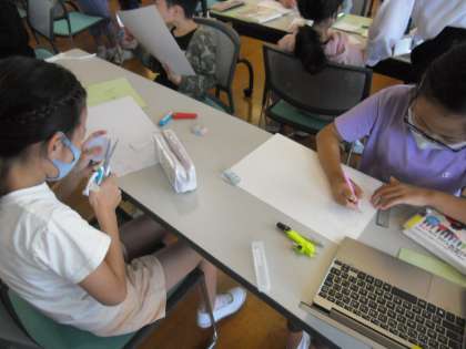 イラストや校内新聞など、グループごとに工夫しながら、素敵なプレゼントを考えていました。