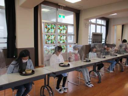 いただき方を聞きながら楽しみました。お茶碗を回すのが難しそうでしたが,丁寧にゆっくり作法を確認していました。