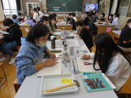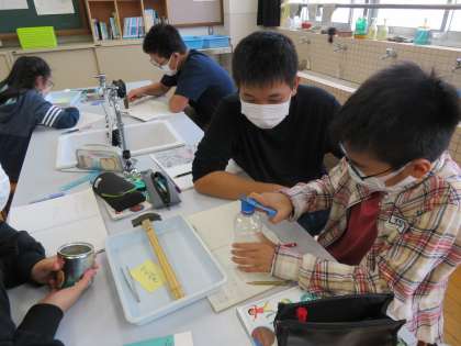 はさみをはじめ、ペンチやピンセット、缶切などの道具を使いながら「支点」「力点」「作用点」がどこに当たるかを考えました。
