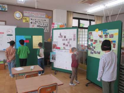 5時間目の参観に向けて,祭りのことを発表するみんなは,指導者が声をかけなくても自分たちから練習を始めていました。