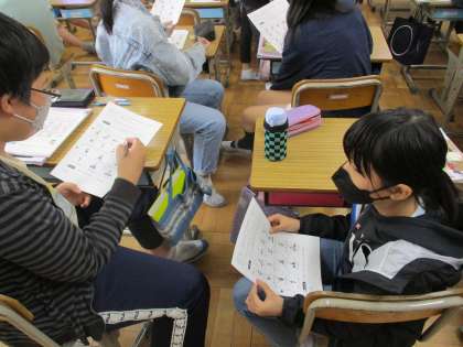 友達や先生の紹介をする表現の練習をしました。