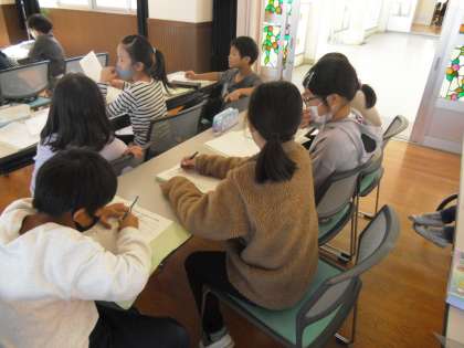 今日は本番に向けてお店の紹介文を考えました。インタビューをして学んだことなどをもとに、一人一人が素敵な紹介文を考えていました。