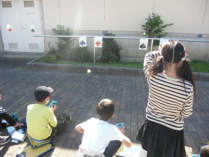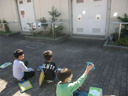 外に出て実際に調べてみると…光はまっすぐに進んでいることが分かりました。